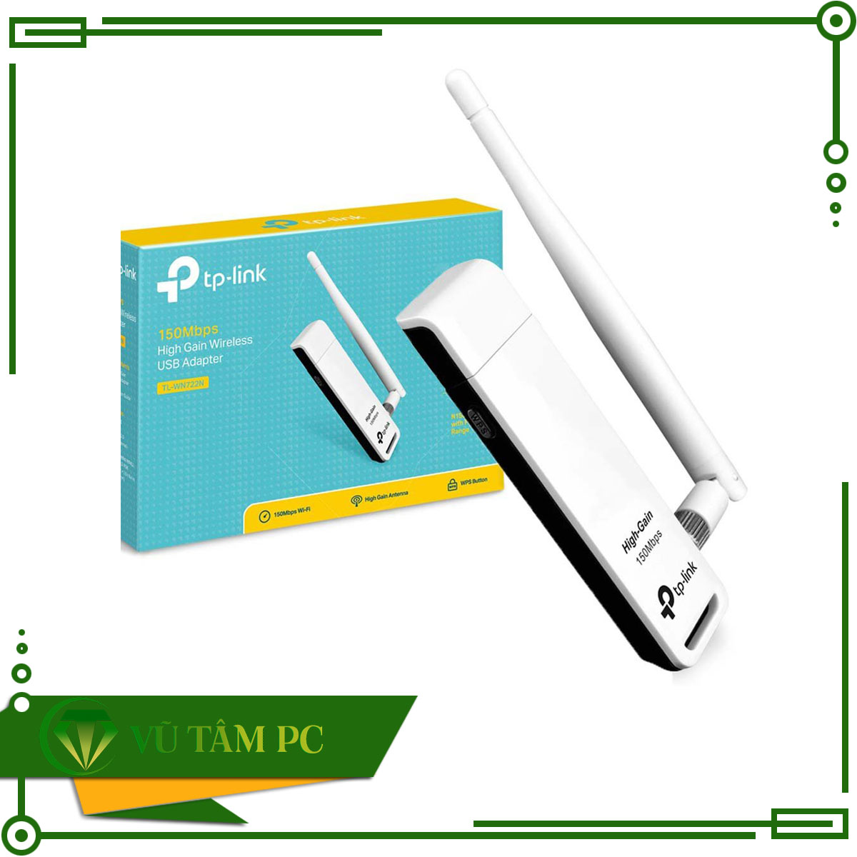 Cạc mạng không dây TP-Link USB TL-WN722N (Chuẩn N/ 150Mbps/ 1 Ăng-ten ngoài)